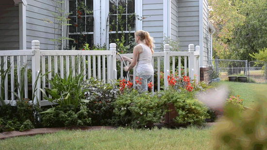 In this piece, my generous family friend let me record her watering her garden. Everything moved significantly with the Oklahoma wind, so I needed enough footage to capture a few seconds of gentle motion. The recording ended up being about four minutes long, and I spent more time scrubbing through footage for the best few seconds to use. Then, in Adobe Photoshop, I duplicated the paused video for my still image and pasted this to a new layer.
