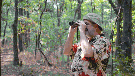 Onto those final two cinemagraphs: my father, Larry, does all sorts of goofy YouTube videos. His main characters are Marty J. Maxwell and Mister Larry on his Rothline channel. Coincidentally, our setting for this adventure is one of the locations used in his Mister Larry Visits Bigfoot video. I took three videos of him: one with him holding up his binoculars and lowering them down, another where he looks to the camera while lowering the binoculars, and the third where he runs in circles (this did not get used, but is hysterical). I trimmed all of these to the appropriate lengths for creating cinemagraphs.